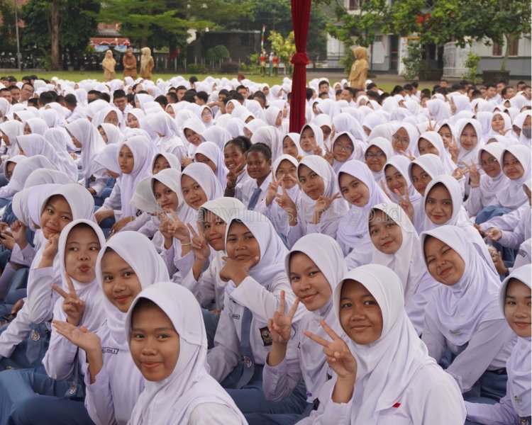 PURWOKERTO, kab-banyumas.kpu.go.id - Komisi Pemilihan Umum (KPU) Kabupaten Banyumas kembali menyelenggarakan kegiatan Pendidikan Pemilih Pemula di SMA Negeri 2 Purwokerto, Senin (20/10/2025) pagi. Kegiatan yang berlangsung di lapangan sekolah ini diikuti lebih dari seribu siswa dari kelas X hingga XII.