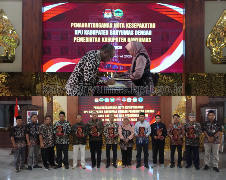 Penandatanganan nota kesepahaman dilakukan oleh Ketua KPU Kabupaten Banyumas, Rofingatun Khasanah, bersama Bupati Banyumas serta pimpinan perguruan tinggi yang hadir.