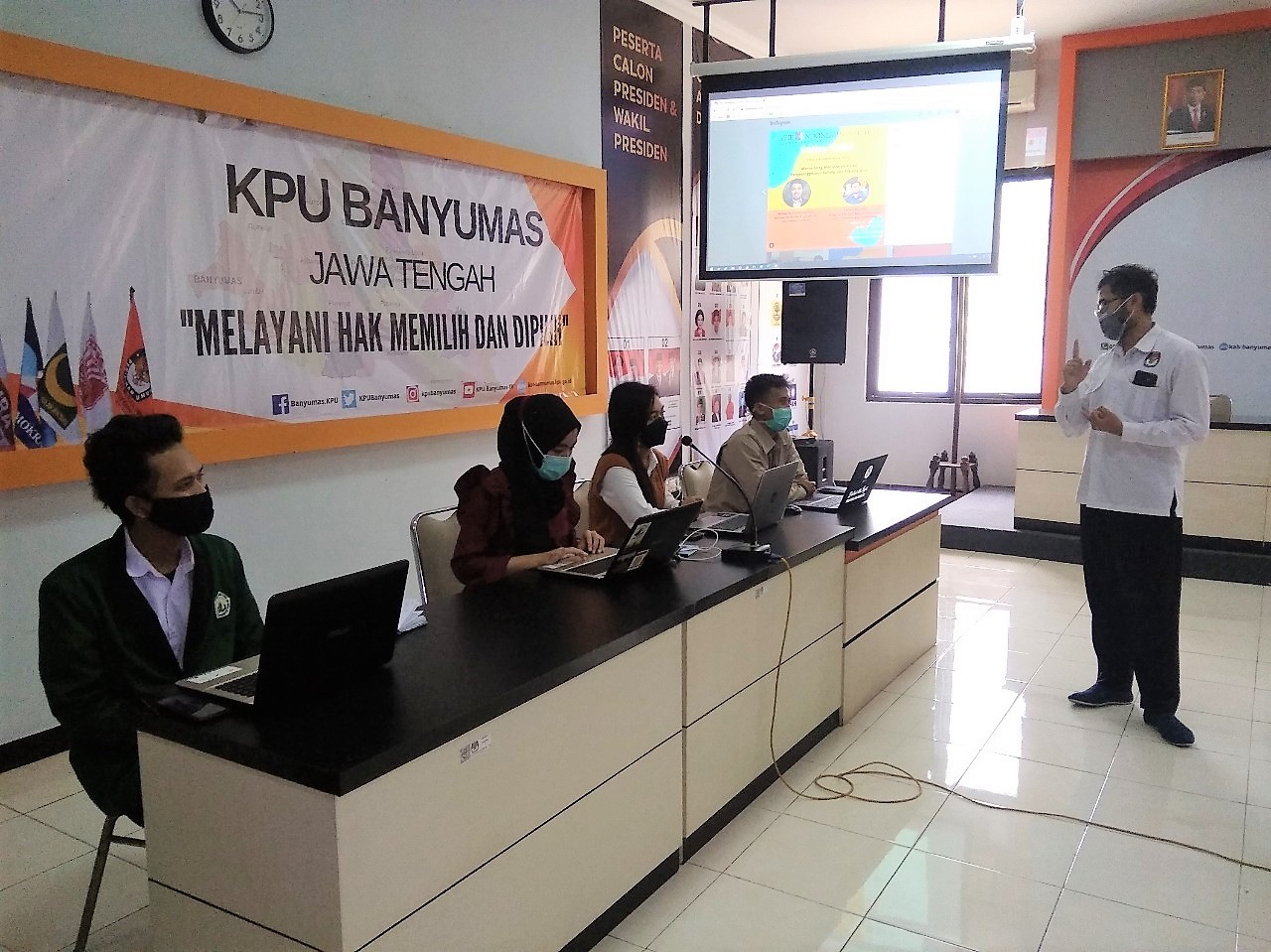 Purwokerto – Komisi Pemilihan Umum (KPU) Kabupaten Banyumas adakan Kelas Pemilu Manajemen Resiko Penyelenggaraan Pemilu dan Pilkada 2024 yang diikuti oleh mahasiswa magang, Senin (14/06/2021).