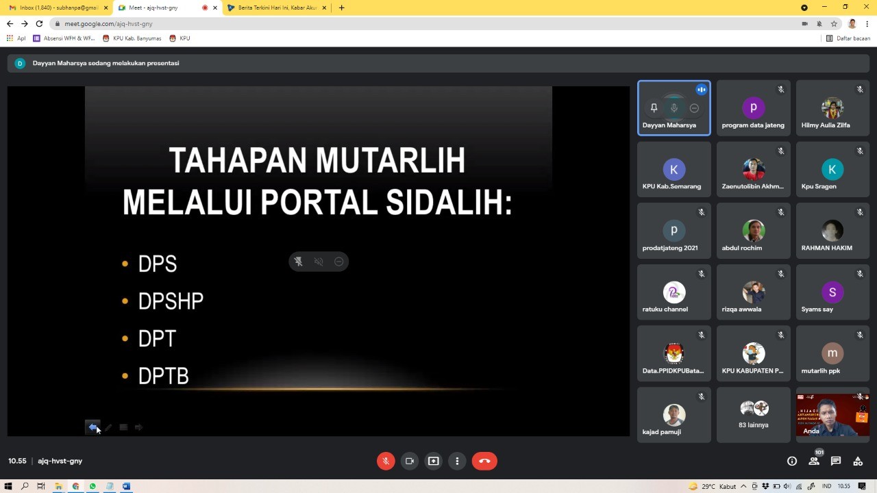 Demikian salah satu poin yang didapat dalam kegiatan Rabu Ingin tahu (RIT) dengan tema “Sidalih, Probelematika dan Siasat Kerja” yang dipandu oleh Sub Koordinator Program dan Data KPU Provinsi Jawa Tengah Kurnia Dian Wijanarko. Bertindak sebagai narasumber Anggota KPU Provinsi Jawa Tengah Paulus Widiyantoro, Anggota KPU Kabupaten Semarang Divisi Perencanaan, Data dan Informasi (Rendatin) Bambang Setiono dan Mungki Maharani operator Sidalih KPU Kabupaten Grobogan, Rabu (18/08/2021).