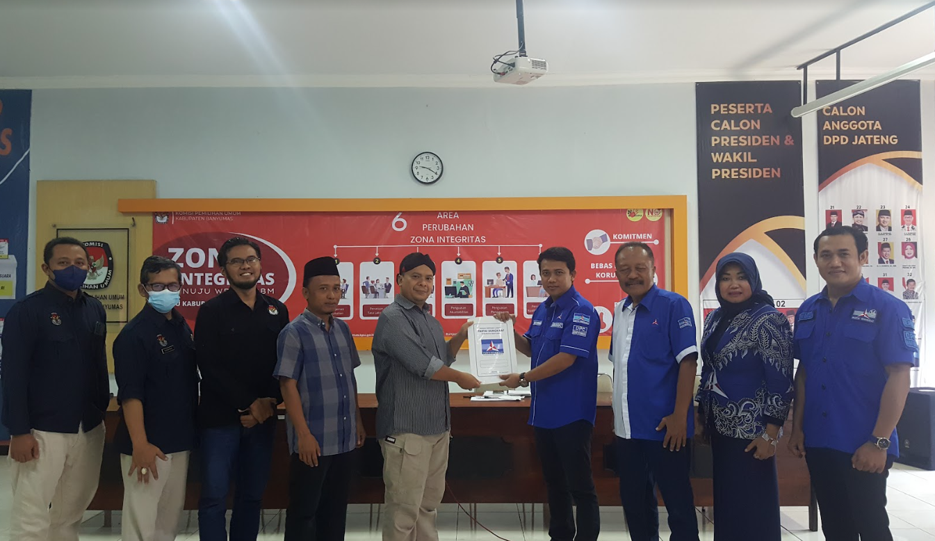 PURWOKERTO - Pengurus Dewan Pengurus Cabang (DPC) Partai Demokrat Kabupaten Banyumas mendatangi kantor Komisi Pemilihan Umum (KPU) Kabupaten Banyumas, Selasa siang (19-07-2022).