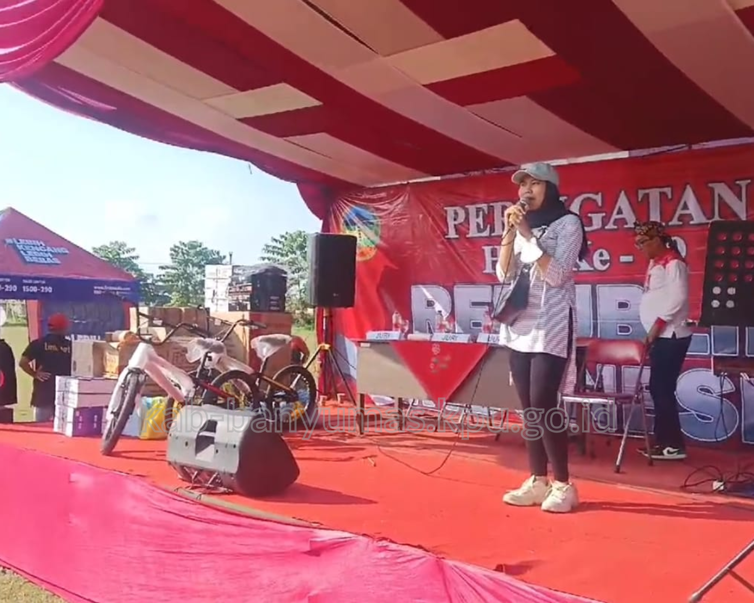 SOKANEGARA - Panitia Pemungutan Suara (PPS) Pilkada 2024 Kelurahan Sokanegara Purwokerto Timur melakukan sosialisasi tahapan Pemilihan Kepala Daerah (Pilkada) 2024 bagi warga Sokanegara bersamaan dengan kegiatan lomba-lomba dalam rangka memperingati Hari Ulang Tahun Ke-79 Republik Indonesia tingkat Kelurahan Sokanegara, di Lapangan Sepak Bola Sokanegara. Hadir dalam kegiatan saat pembukaan lomba Camat Purwokerto Timur, Kapolsek, Lurah Sokanegara, Bintara Pembina Desa (Bhabinsa), Bhayangkara Pembina Keamanan dan Ketertiban Masyarakat (Bhabinkamtibmas), Tim Penggerak Pemberdayaan Kesejahteraan Keluarga (TP PKK), Ketua Rukun Tetangga (RT) dan Rukun Warga (RW), tokoh masyarakat serta warga Sokanegara, Minggu (04-08-2024).