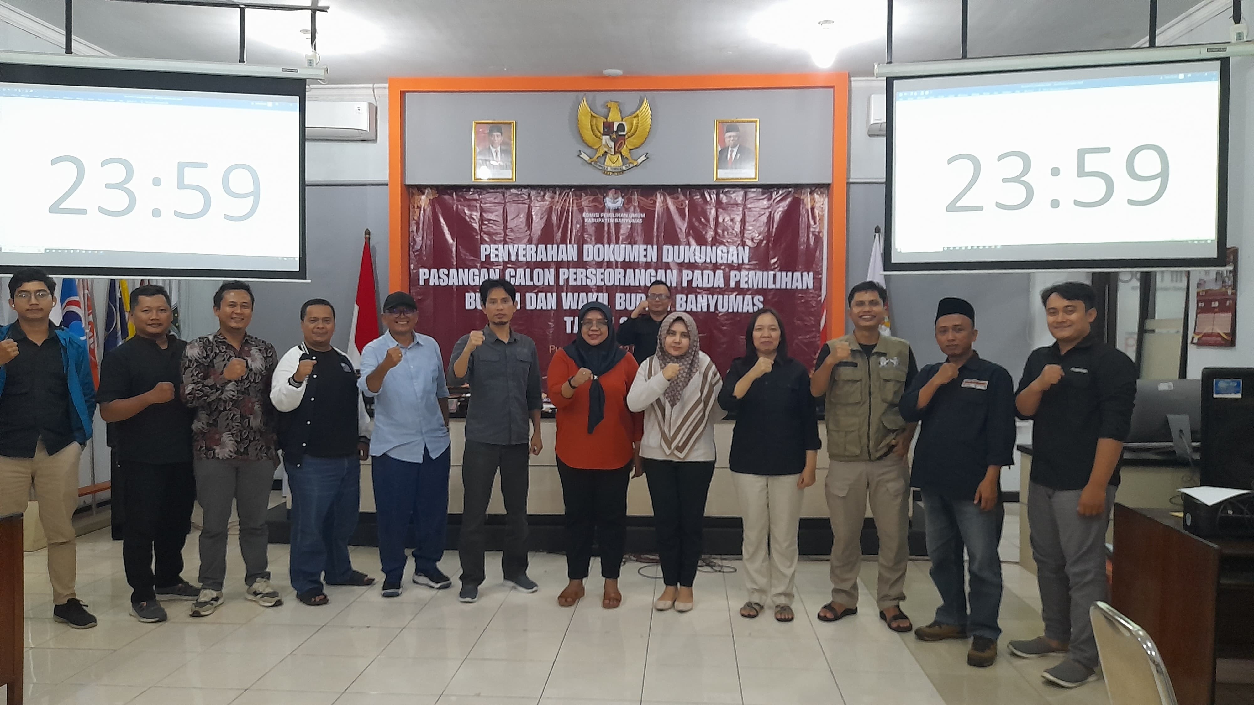 “Tahapan penyerahan dokumen dimulai sejak Rabu, 8 Mei 2024 hingga Minggu 12 Mei 2024 sebagaimana ketentuan dalam Keputusan KPU Nomor 532 Tahun 2024. Hingga batas akhir pukul 23.59 tidak ada yang datang ke KPU Banyumas, sehingga dapat dinyatakan tidak ada bakal calon bupati dan wakil bupati dari jalur perseorangan pada Pilkada Banyumas Tahun 2024 ini,” jelas pria yang akrab disapa Thoni ini.