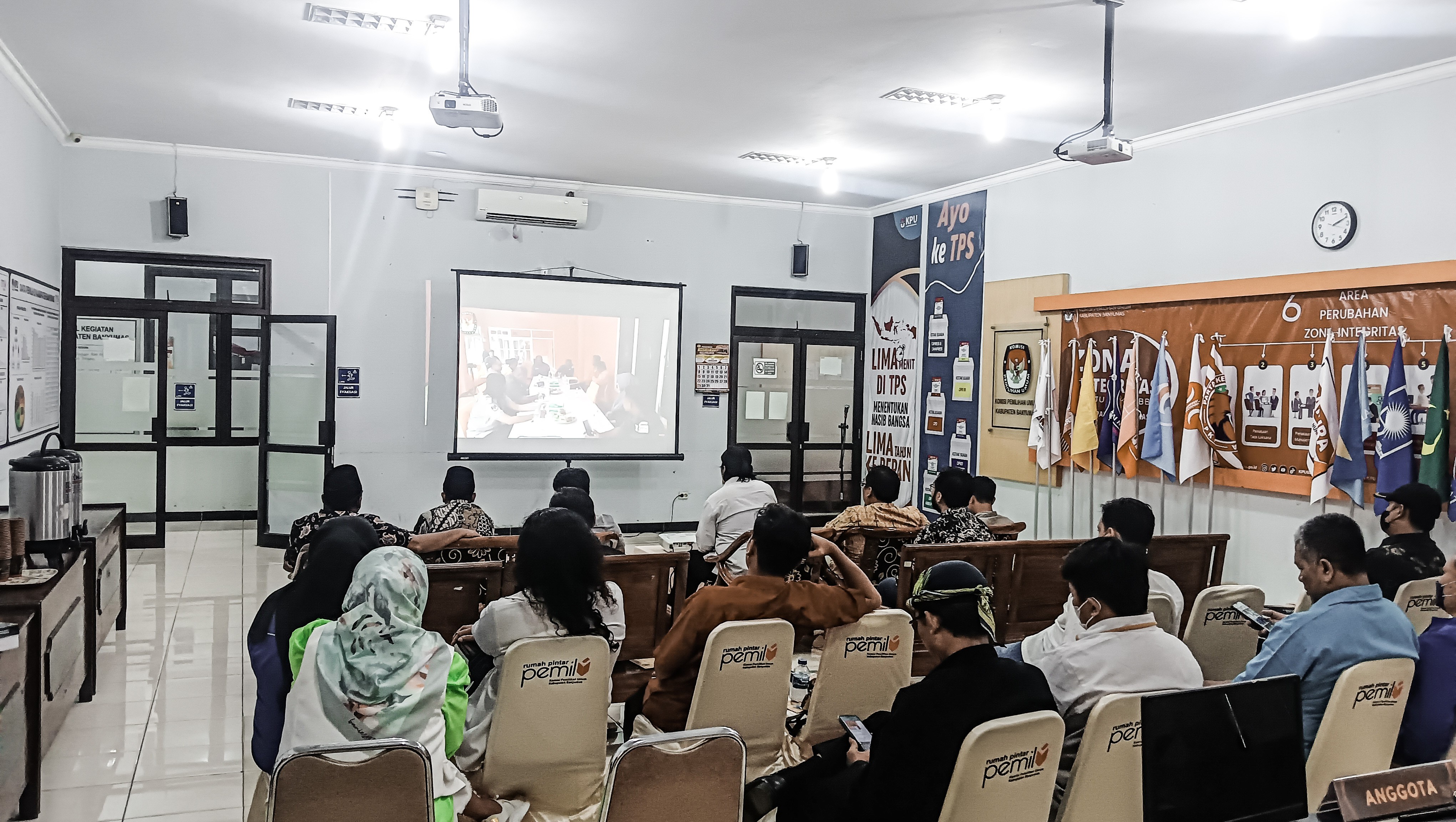 PURWOKERTO - Tepat satu tahun menjelang hari H Pemungutan Suara Pemilu 2024, Komisi Pemilihan Umum (KPU) Kabupaten Banyumas menggelar nonton bareng (nobar) peluncuran Kirab Pemilu 2024 di Aula KPU Banyumas, Selasa (14/2). Acara nobar diikuti seluruh partai politik (parpol) peserta Pemilu 2024 dan dinas terkait.