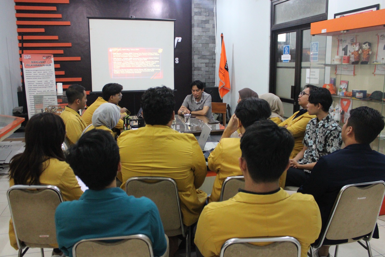 PURWOKERTO - Komisi Pemilihan Umum (KPU) Kabupaten Banyumas kembali menggelar Kelas Pemilu kepada para peserta magang KPU Banyumas. Bertempat di Ruang Media Center KPU Banyumas pada Kamis (30-05-2024) kelas dinarasumberi oleh Anggota KPU Kabupaten Banyumas Divisi Hukum dan Pengawasan, Khasis Munandar.