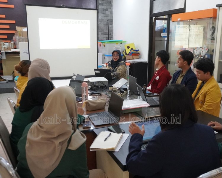 PURWOKERTO, kab-banyumas.kpu.go.id — Komisi Pemilihan Umum (KPU) Kabupaten Banyumas menggelar Kelas Pemilu ke-2 bagi mahasiswa magang mandiri angkatan XXII pada Selasa (8/7/2025) di ruang Media Center KPU. Kelas ini mengangkat tema “PEMILU sebagai Sarana Integrasi Bangsa”, dengan narasumber Ketua KPU Kabupaten Banyumas, Rofingatun Khasanah.