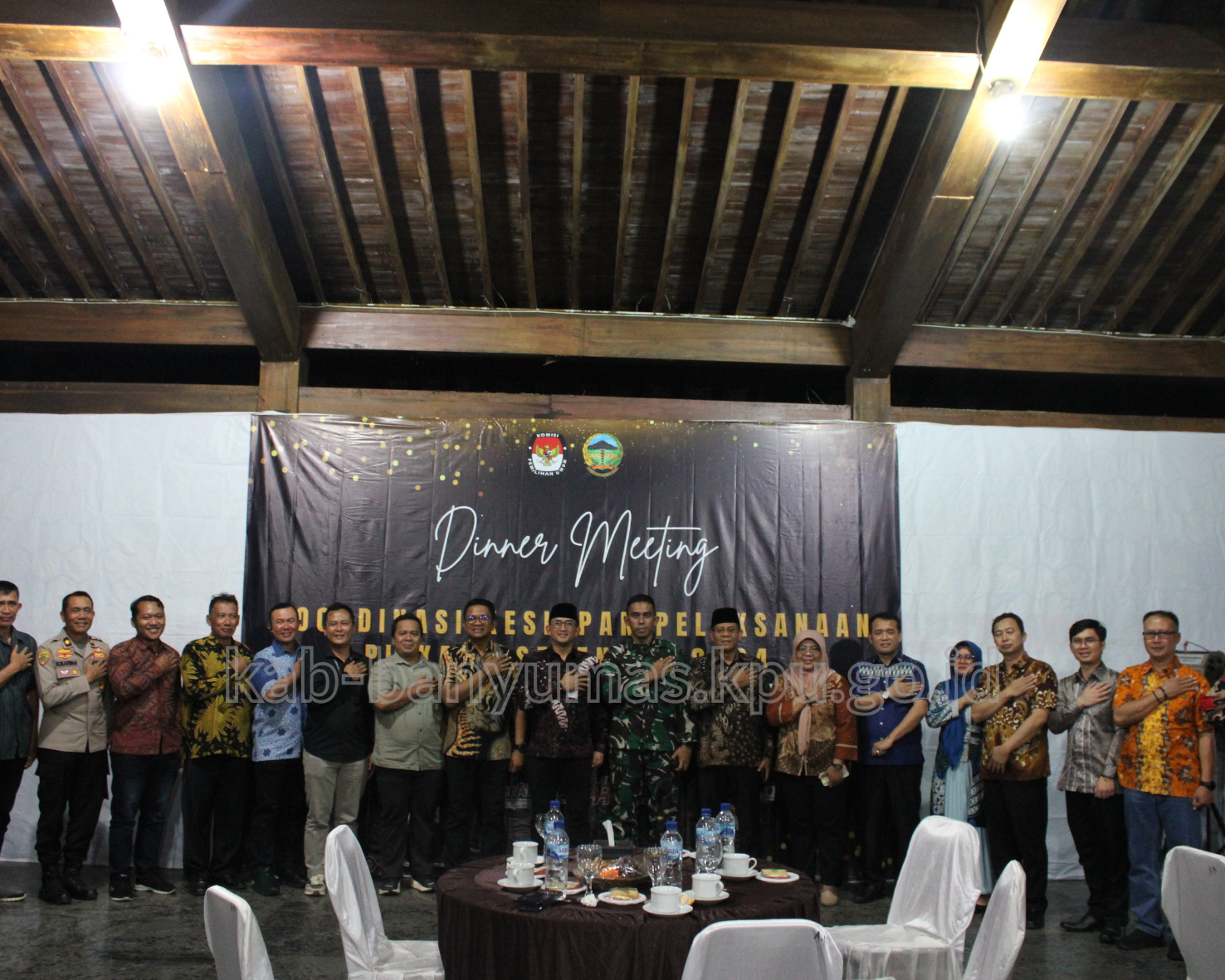 PURWOKERTO, kab-banyumas.kpu.go.id – Komisi Pemilihan Umum (KPU) Kabupaten Banyumas mengadakan rapat koordinasi persiapan pelaksanaan Pilkada Serentak 2024 dengan konsep Dinner Meeting pada Jumat (23/8/2024). Rapat ini diinisiasi oleh KPU Banyumas dan dihadiri oleh Penjabat (Pj) Bupati Banyumas, jajaran Forum Komunikasi Pimpinan Daerah (Forkompinda) Kabupaten Banyumas di Pendopo Polresta Banyumas.