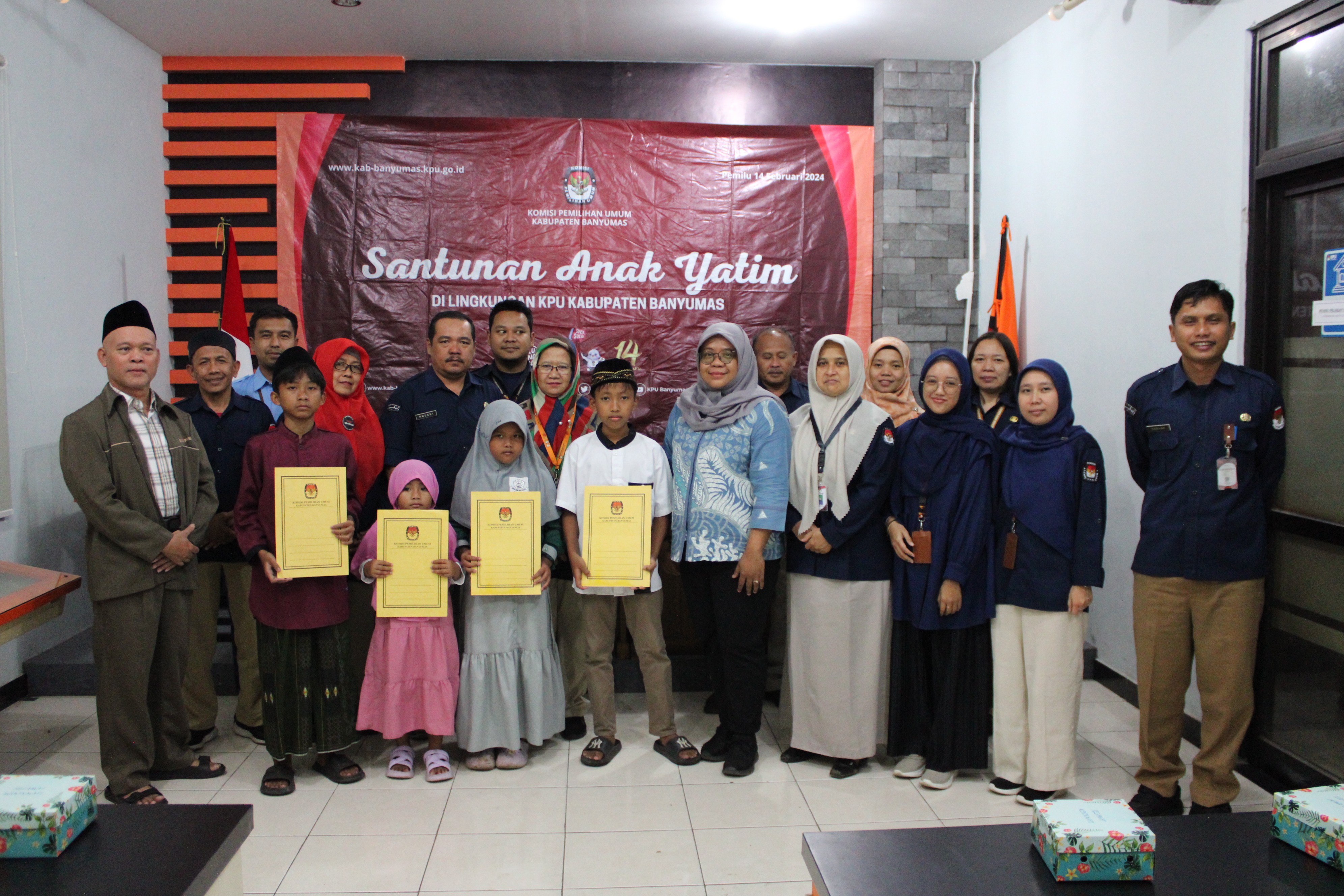 Kegiatan dihadiri oleh Komisioner dan jajaran sekretariat KPU Banyumas serta pimpinan dan anak yatim dari pondok pesantren Al- Husein, Kelurahan Purwokerto Wetan, Kecamatan Purwokerto Timur.