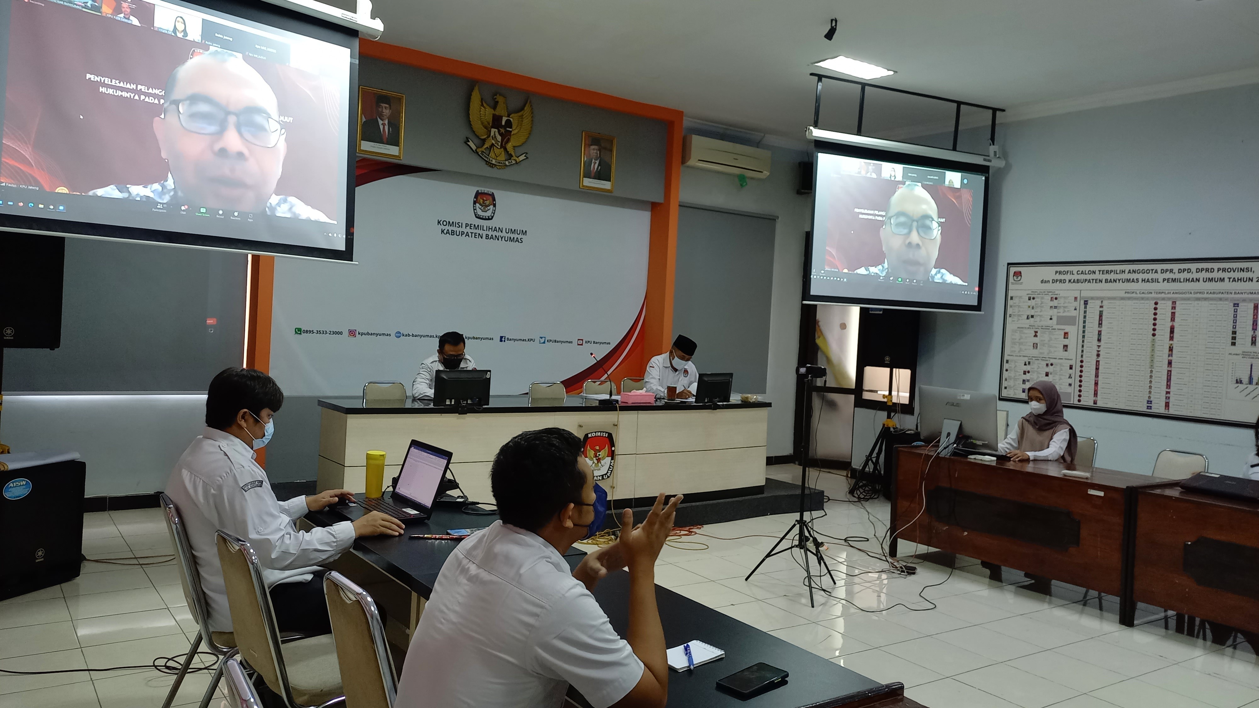 PURWOKERTO – Komisi Pemilihan Umum (KPU) Kabupaten Banyumas Divisi Hukum dan SDM serta Teknis dan Perhupmas mengikuti acara Bimbingan Teknis Legal Drafting Penyusunan Keputusan Pemilu/Pemilihan yang diselenggarakan oleh KPU Provinsi Jawa Tengah secara daring melalui Zoom meeting di Aula KPU Banyumas, Senin (23/05/2022).