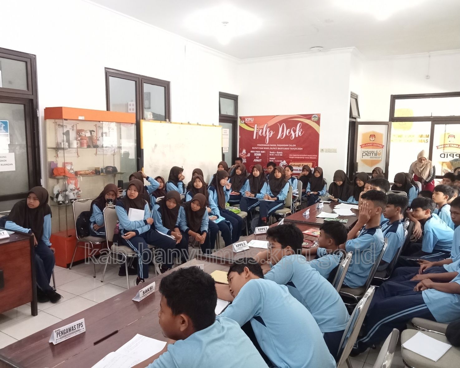 KPU Kabupaten Banyumas yang diwakili oleh Sarikasih selaku pelaksana sub bagian Partisipasi Masyarakat dan Sumber Daya Manusia menerima kunjungan siswa-siswi tersebut di Aula KPU Banyumas. Setelah acara penyambutan selesai kemudian dilanjutkan dengan sesi pemaparan materi yang disampaikan langsung oleh Sarikasih. Materi yang disampaikan kepada siswa dan siswi pun terkait dengan materi kepemiluan.
