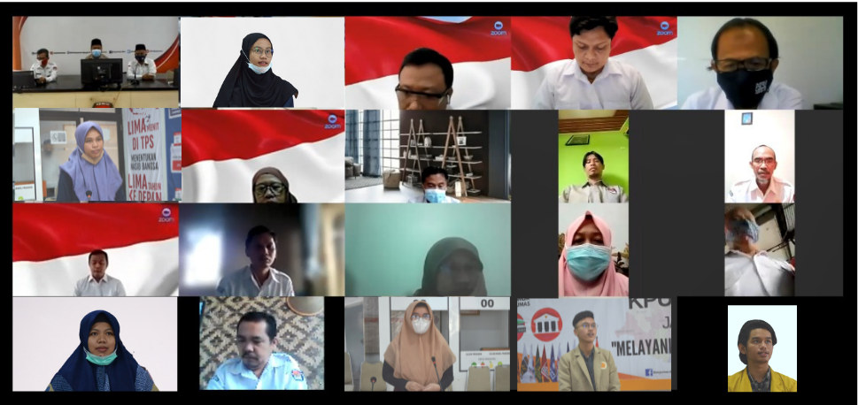 PURWOKERTO – Komisi Pemilihan Umum (KPU) Kabupaten Banyumas kembali kedatangan beberapa wajah baru pada Kamis (05/08/2021). Secara luring dan daring KPU Banyumas menerima enam mahasiswa angkatan ke-IV Tahun 2021 yakni Muhammad Noor Faiz Husaini Pratama (UGM Yogyakarta), Novia Azzahra (Unsoed Purwokerto), Zuffar Adani Adhitya (Unsoed Purwokerto), Hikmah Safitri (IT Telkom Purwokerto), Asha Sembiring (IT Telkom Purwokerto), dan Nadila Dwiyanti (IT Telkom Purwokerto).