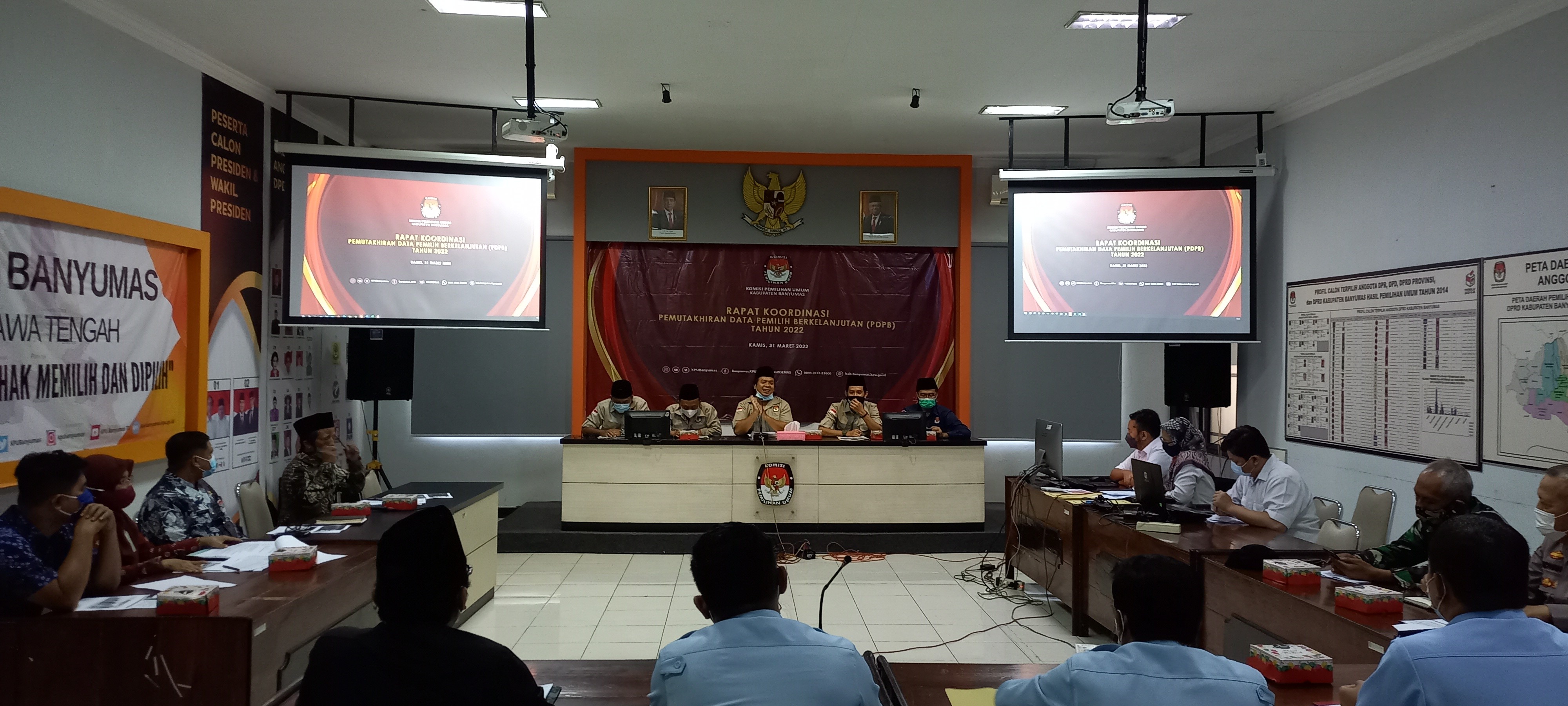 PURWOKERTO – Komisi Pemilihan Umum (KPU) Kabupaten Banyumas melaksanakan Rapat Koordinasi Pemutakhiran Data Pemilih Berkelanjutan (DPB) dan dilanjutkan Rapat Pleno Triwulan I Tahun 2022 pada Kamis (31/3/2022).