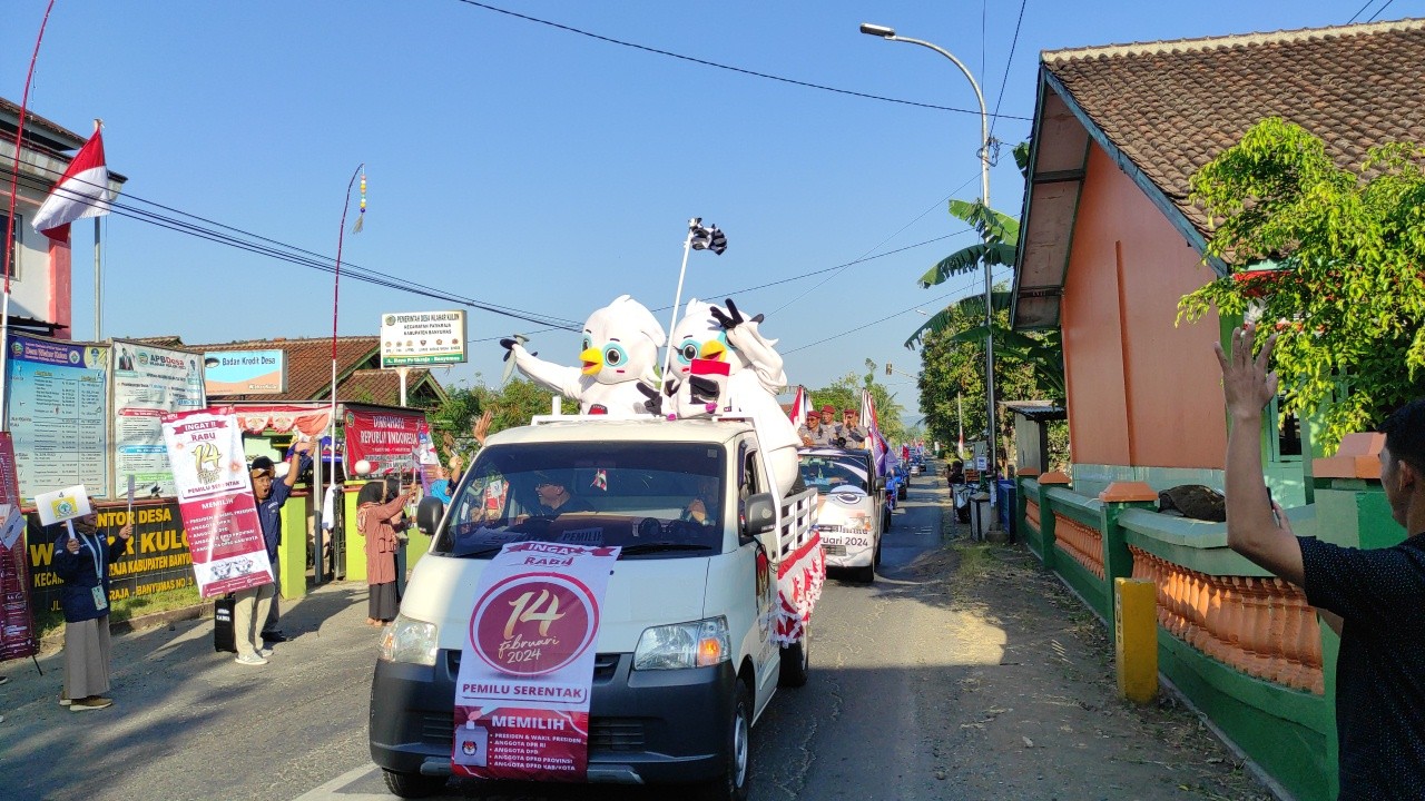 Sebagai informasi, pawai Kirab Pemilu 2024 di Kabupaten Banyumas merupakan bentuk kegiatan sosialisasi kepada masyarakat Banyumas yang disampaikan melalui pengeras suara, ornamen pada kendaraan hias dan juga berbagai macam pesan yang disampaikan melalui tulisan yang dibawa pengendara. Pawai Kirab Pemilu 2024 di Kabupaten Banyumas disaksikan masyarakat sekitar 3000 orang. (hwo)