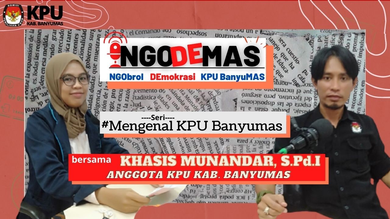 PURWOKERTO – Program NGODEMAS atau Ngobrol Demokrasi Komisi Pemilihan Umum (KPU) Kabupaten Banyumas kembali hadir di channel YouTube KPU Banyumas, Selasa (21/09/2021). Dalam seri “Mengenal KPU Banyumas”, episode ke-35 ini menampilkan Anggota KPU Divisi Perencanaan, Data, dan Informasi (Rendatin) Khasis Munandar dan dipandu oleh Asha Sembiring selaku mahasiswa magang di KPU Banyumas Angkatan ke-IV tahun 2021 dari Institut Teknologi (IT) Telkom Purwokerto.