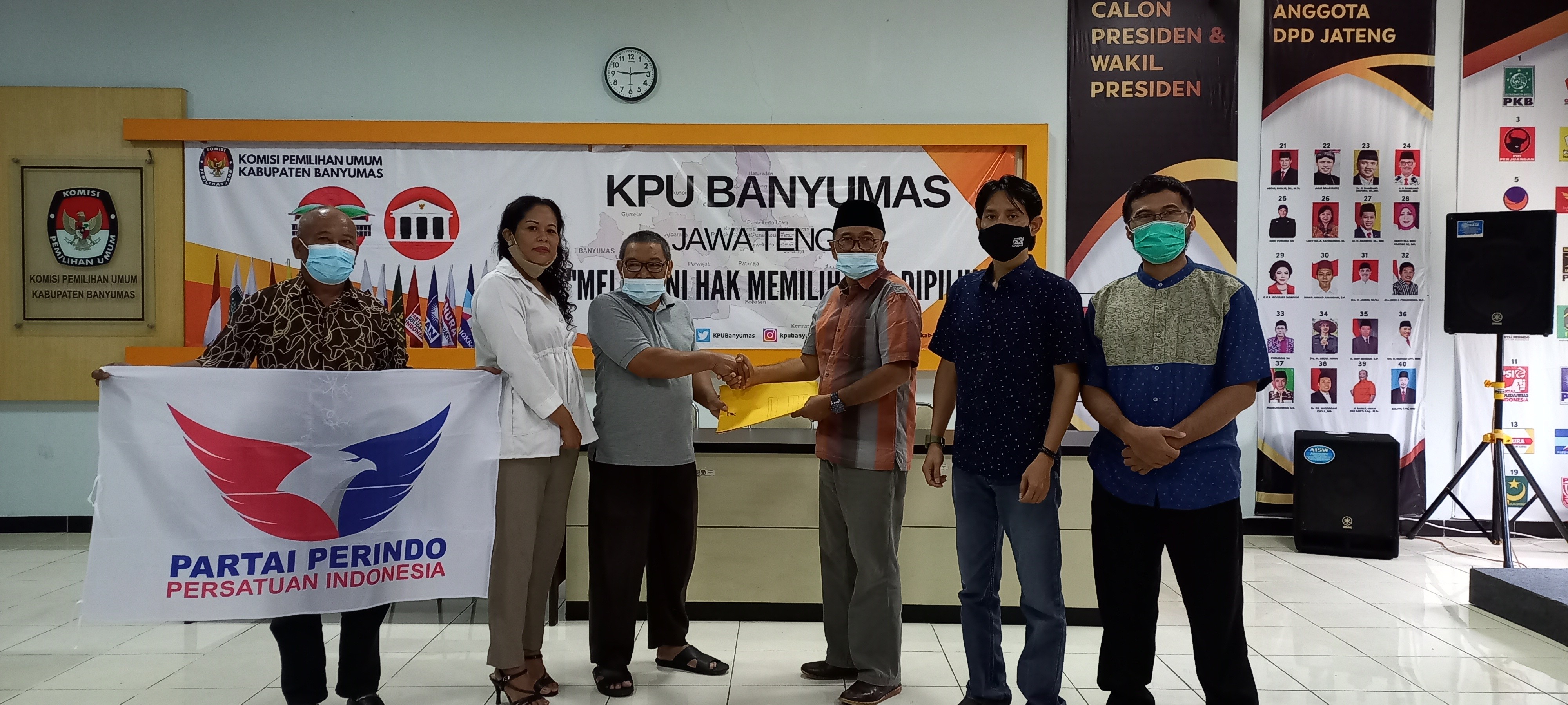 Kedatangan tim DPD Partai Perindo disambut oleh Anggota KPU Banyumas, dan Kepala Sub Bagian Teknis Penyelenggara Pemilu Partisipasi dan Hubungan Masyarakat KPU Banyumas di aula kantor. Anggota KPU Kabupaten Banyumas, Divisi Hukum dan Pengawasan, Suharso Agung Basuki menerima secara simbolis maksud dan tujuan kedatangan DPD Partai Perindo.