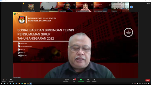 “SiRUP bertujuan mempermudahkan pihak Pengguna Anggaran (PA)/Kuasa Pengguna Anggaran (KPA) dalam mengumumkan RUP nya untuk memperoleh kualitas, kuantitas, waktu dan tempat dalam penggunaan barang yang baik dan komitmen,“ ujar Asep Suhlan saat kegiatan Sosialisasi dan Bimbingan Teknis Pengumuman (SiRUP) Tahun Anggaran 2022 oleh KPU RI yang dilaksanakan Via Zoom, Rabu (02/2/2022).