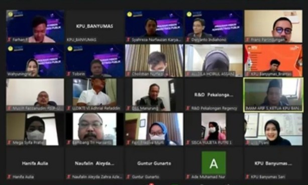 PURWOKERTO - Komisi Pemilihan Umum (KPU) Kabupaten Banyumas mengikuti acara Session Sharing Program Merdeka Belajar Kampus Merdeka (MBKM) Program Studi Administrasi Publik (AP) Fakultas Ilmu Sosial dan Ilmu Politik (Fisip) Universitas Jenderal Soedirman (Unsoed) Purwokerto secara daring melalui zoom meeting, Rabu (29/09/2021).