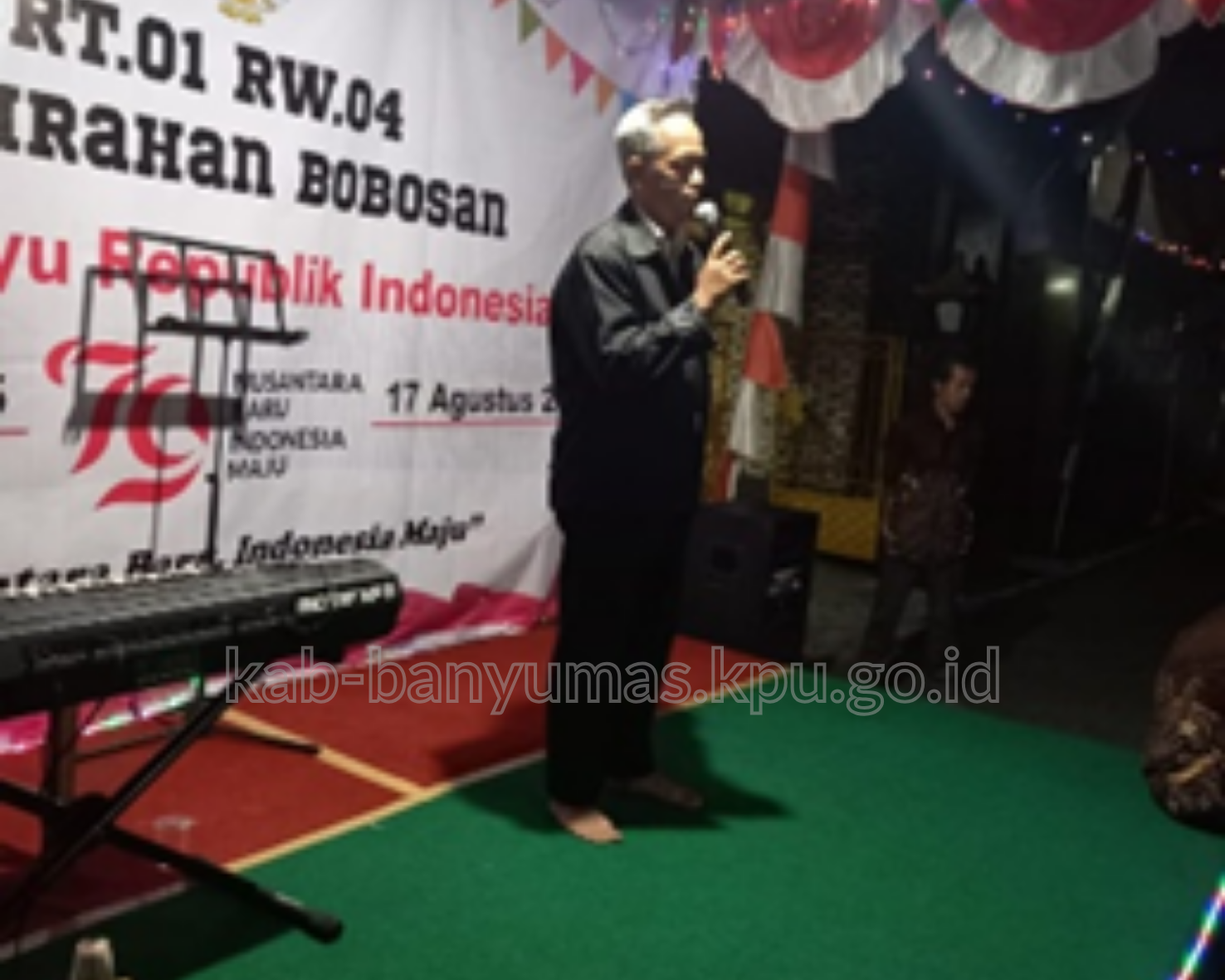 PURWOKERTO, kab-banyumas.kpu.go.id – Bulan Agustus merupakan bulan yang sakral bagi bangsa Indonesia dimana bangsa Indonesia berhasil meraih kemerdekaan di Bulan Agustus. Di tengah kemeriahan rangkaian kegiatan peringatan Kemerdekaan HUT RI ke 79, Pada Hari Jumat (16/8/2024) bertempat di RT 01 RW 04 Kelurahan Bobosan diadakan acara Malam tirakatan. Acara yang dimulai pukul 20.00 WIB dihadiri kurang lebih seratus lima warga RT 01 RW 04.