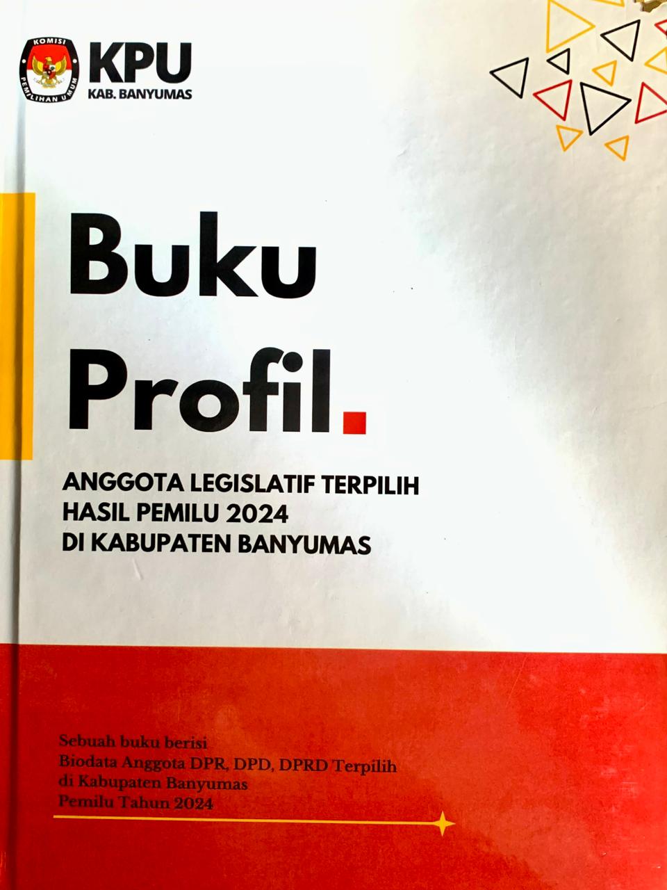 Buku Profil Anggota Legislatif Terpilih Hasil Pemilu 2024 di Kabupaten Banyumas merupakan publikasi resmi KPU Kabupaten Banyumas yang menyajikan informasi tentang para anggota DPRD terpilih hasil Pemilu 2024. Buku ini memuat data singkat meliputi identitas, latar belakang pendidikan, pengalaman, dan partai politik asal masing-masing anggota. Penyusunan buku ini bertujuan sebagai bentuk transparansi dan dokumentasi hasil pemilu, sekaligus memberikan informasi kepada masyarakat mengenai wakil rakyat yang akan mengemban amanah di DPRD Kabupaten Banyumas periode 2024–2029. |